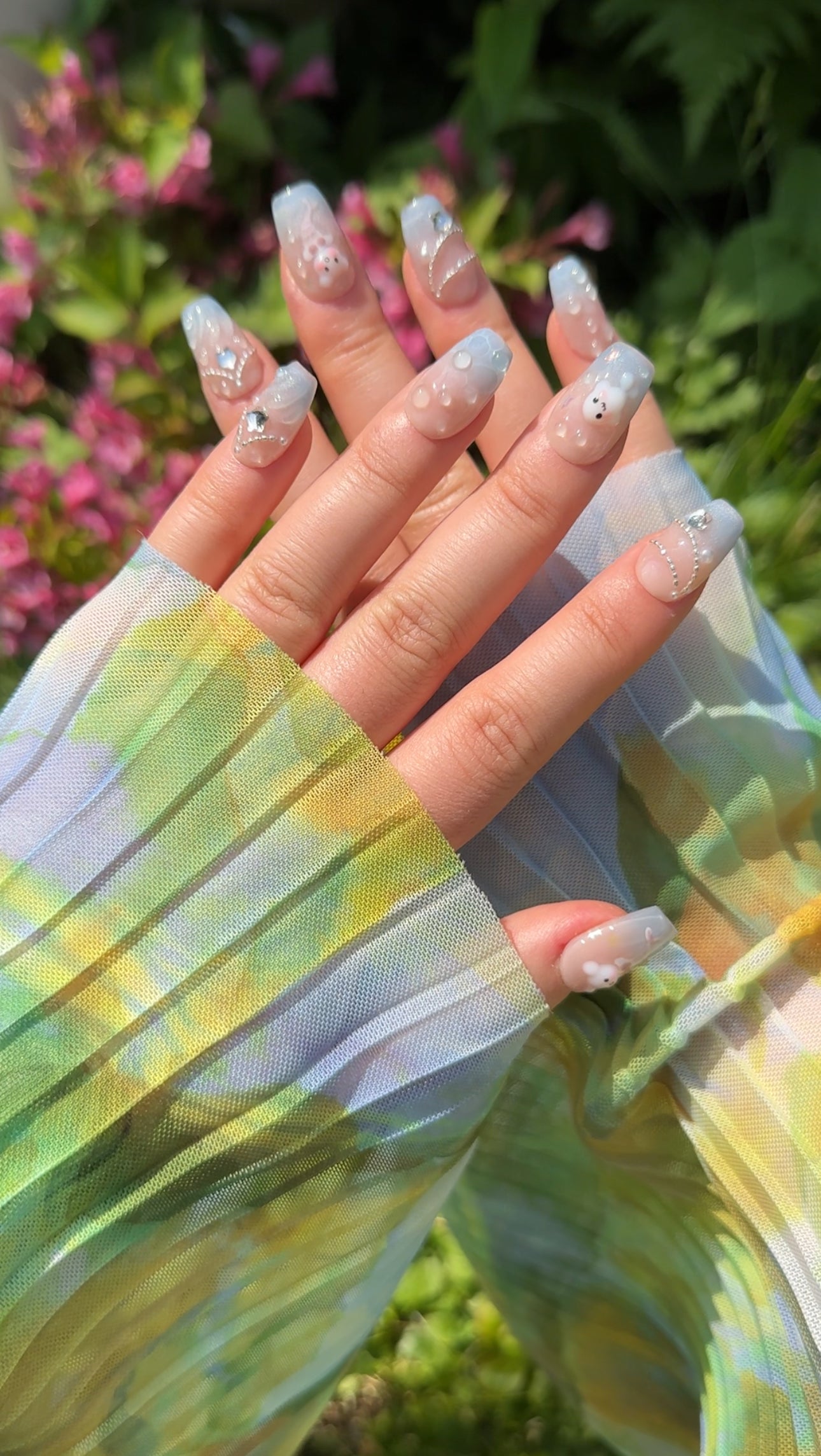 - Application kit: mini file, mini buffer, cuticle pusher, cuticle oil, adhesive tabs, nail glue and alcohol wipes.