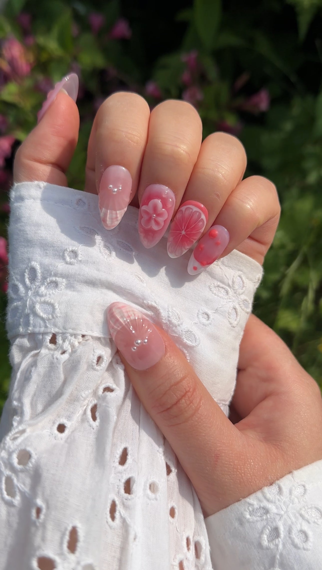 - 10 hand-painted gel nails