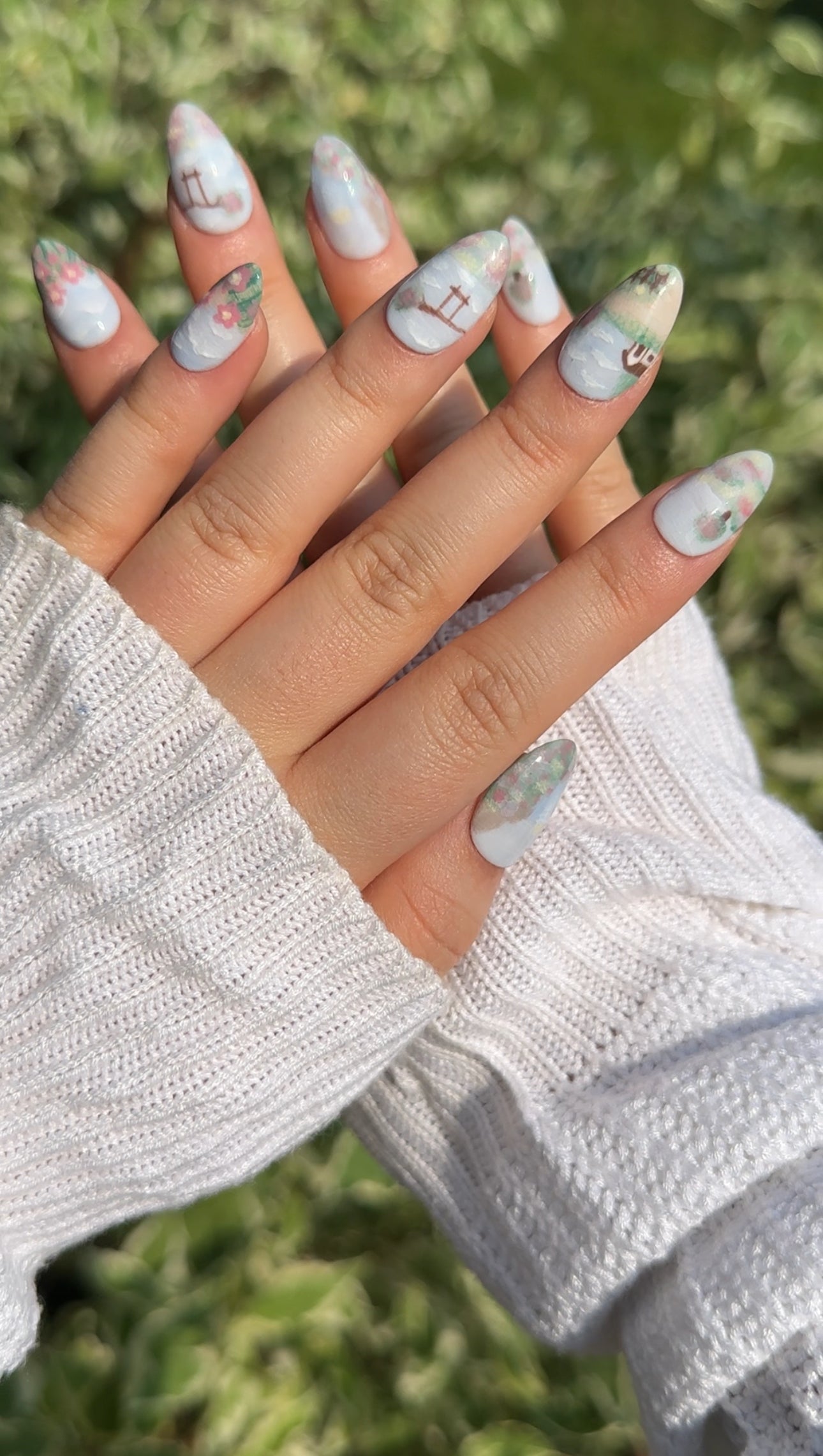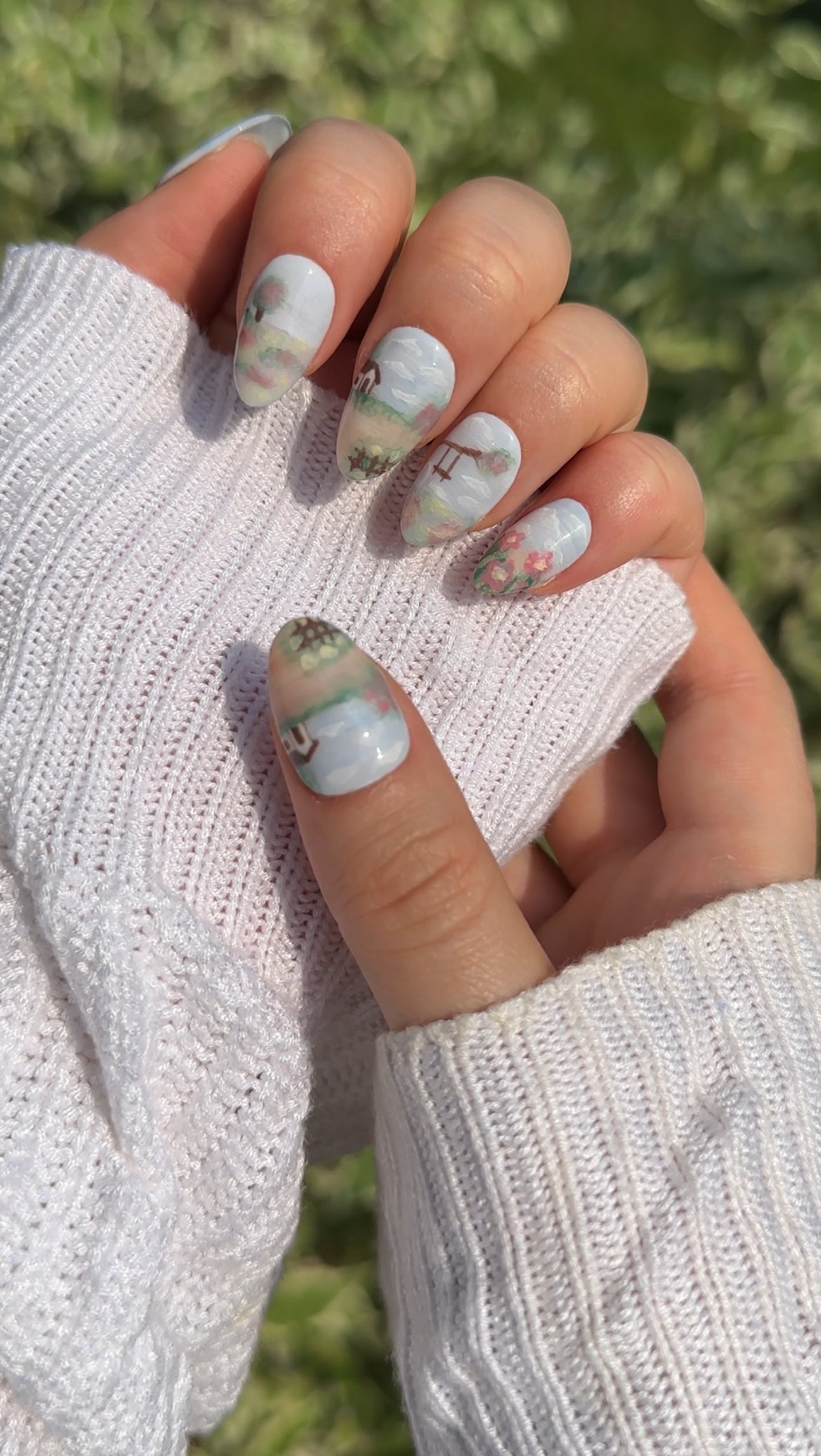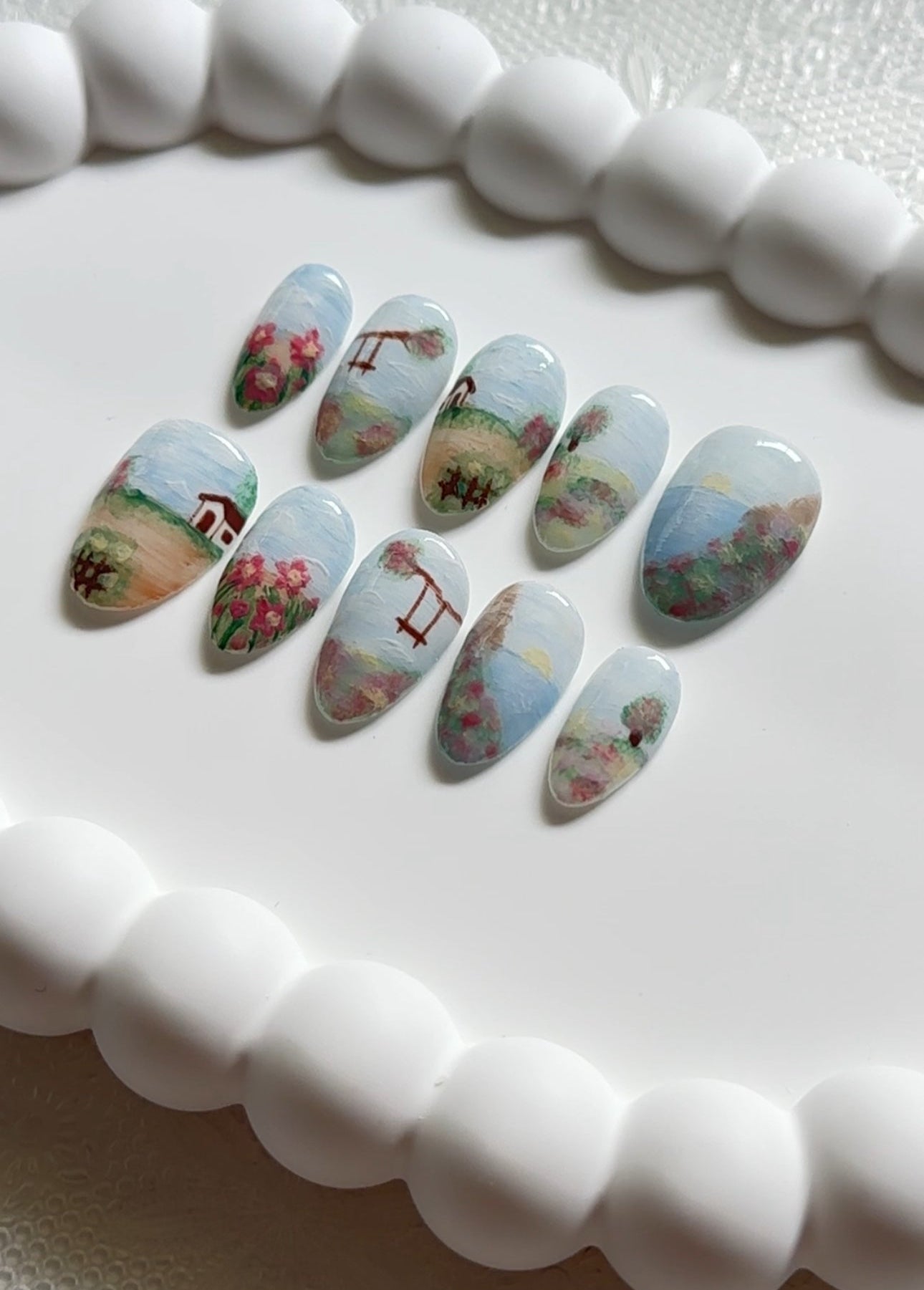 - 10 hand-painted gel nails